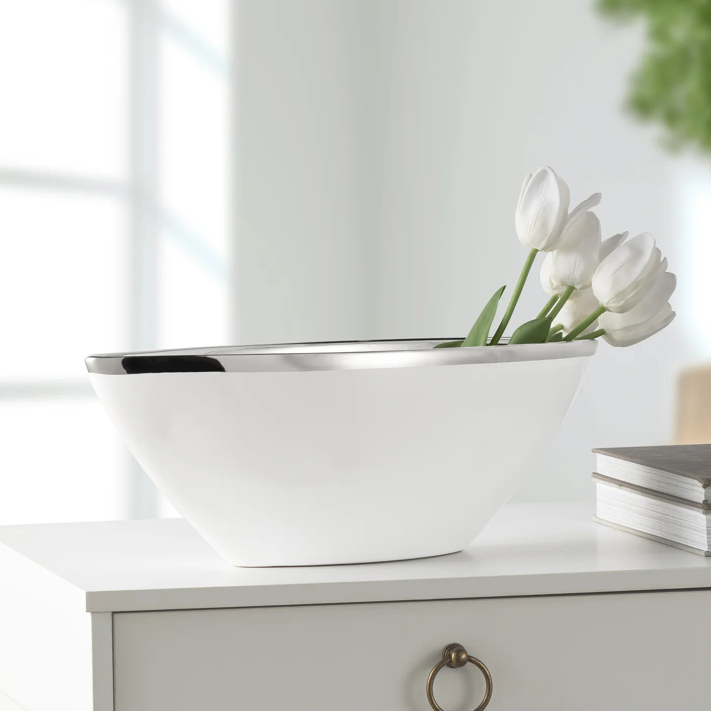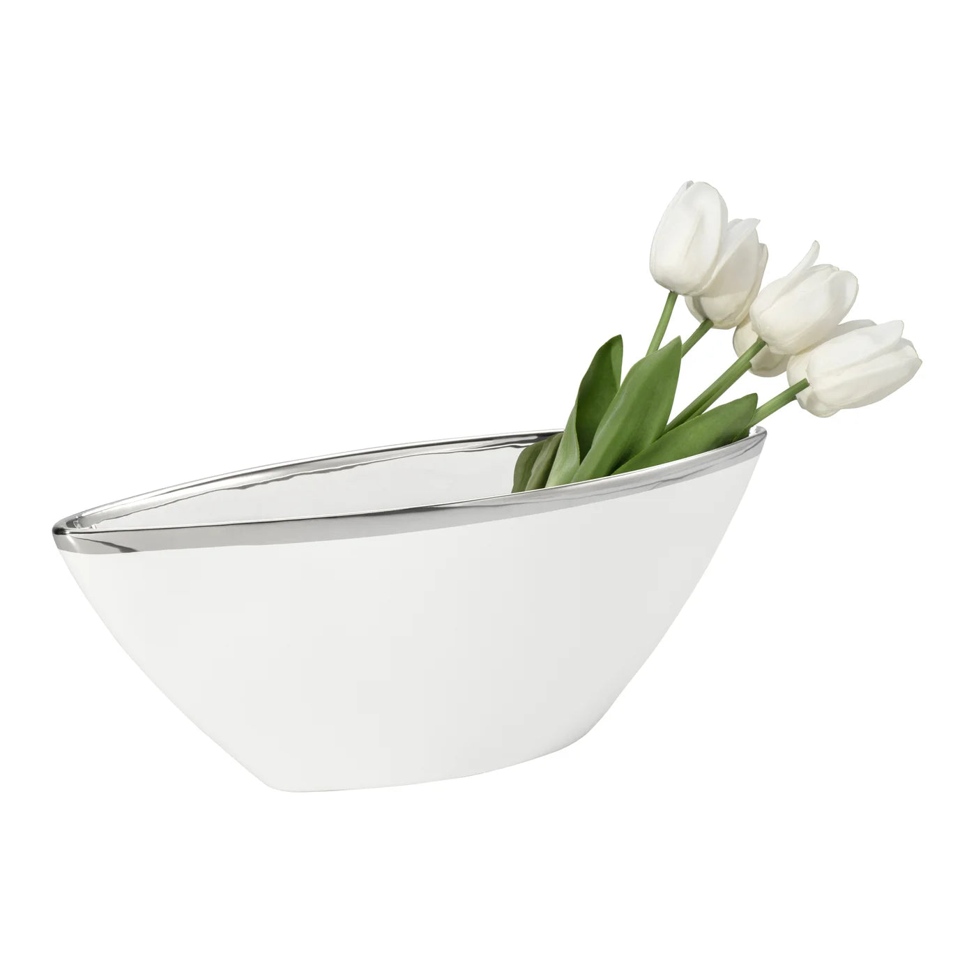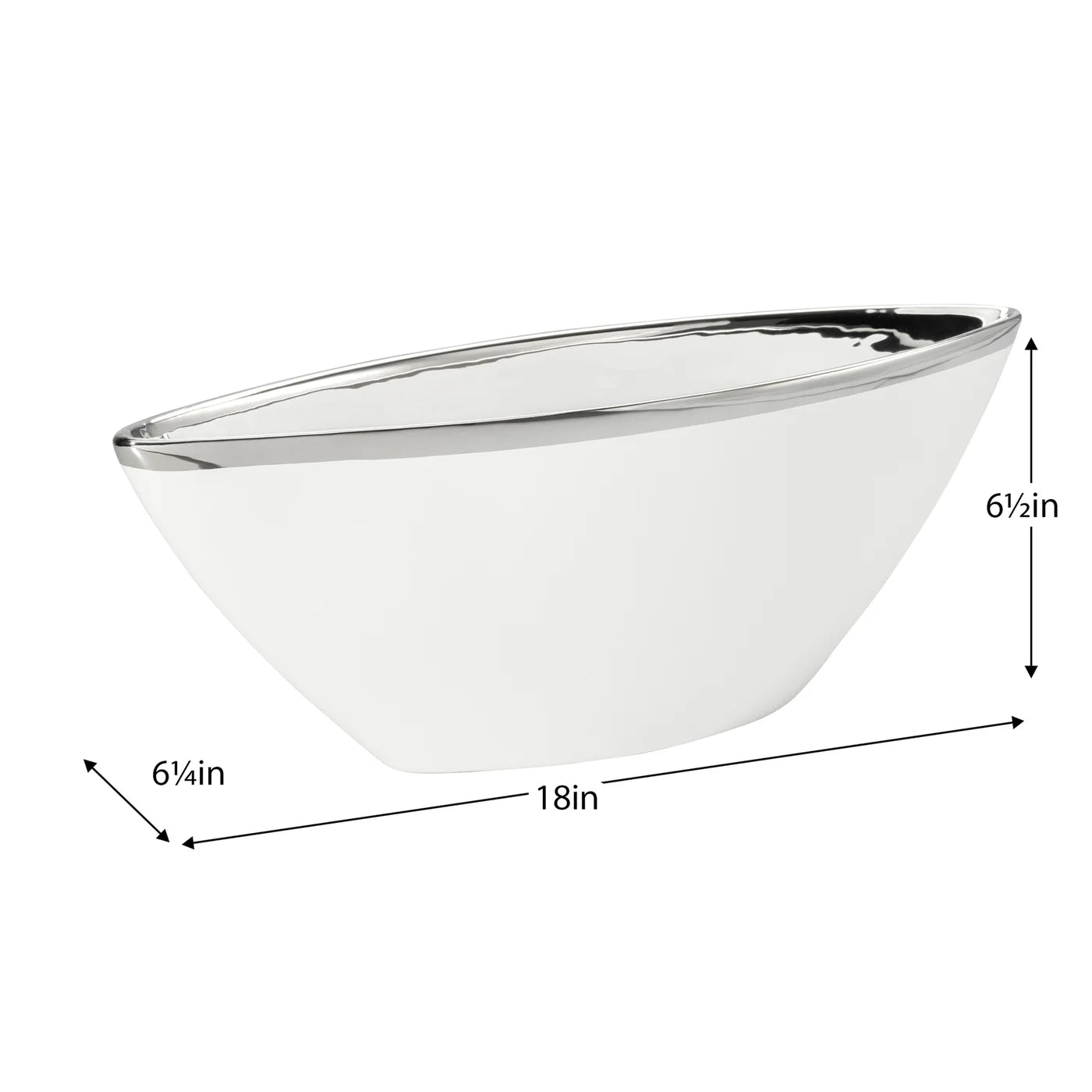 Talia Silver Trim 18"L Ceramic Boat Bowl