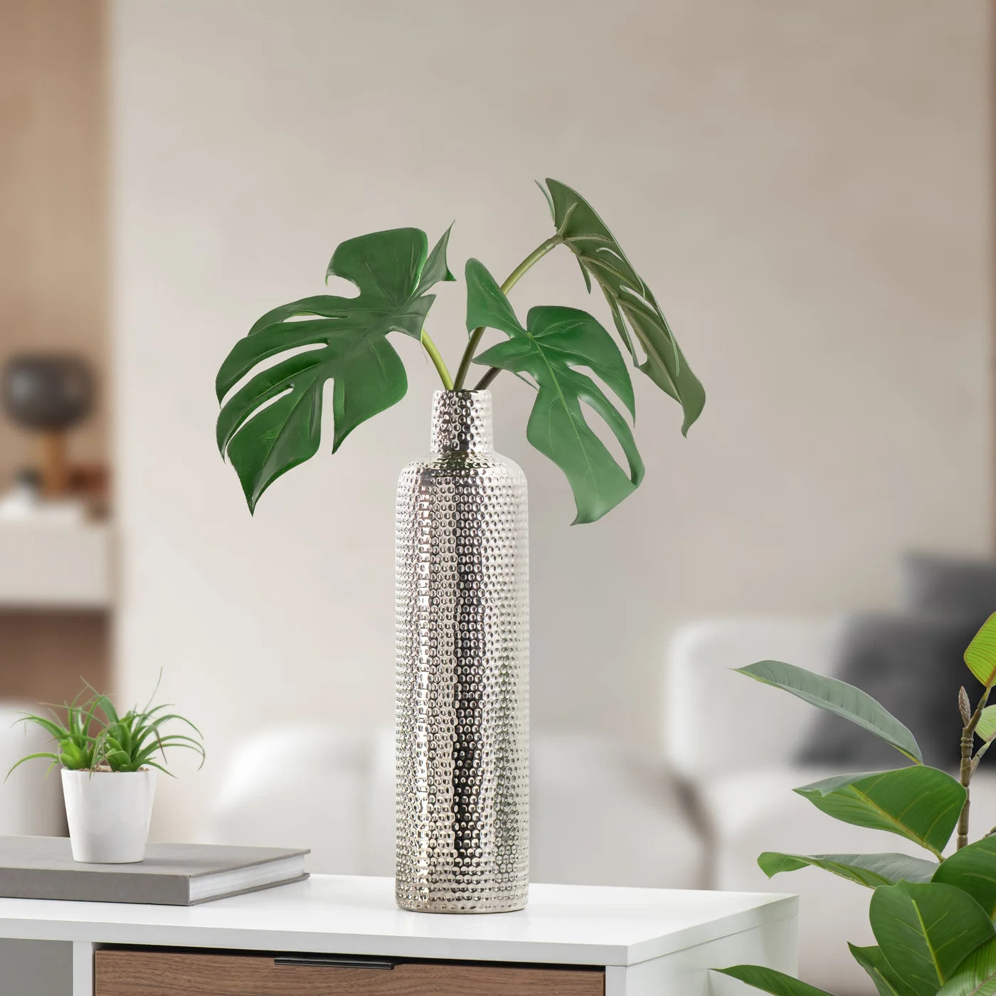 Lilo Dimpled Ceramic 12.25h" Vase - Silver
