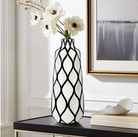 Add drama and style with this modern take on a classic ceramic vase. With underlying elements lasting from Parisian and Bauhaus design, the classic black & white design fits seamlessly into todays home decor to evoke style and sophistication. Fill with fresh or faux florals and place on a table or shelf to make a unique bold statement.