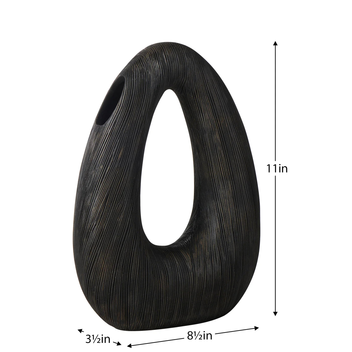 Alma Etched Patina 11.5h" Resin Tall Donut Vase - Black