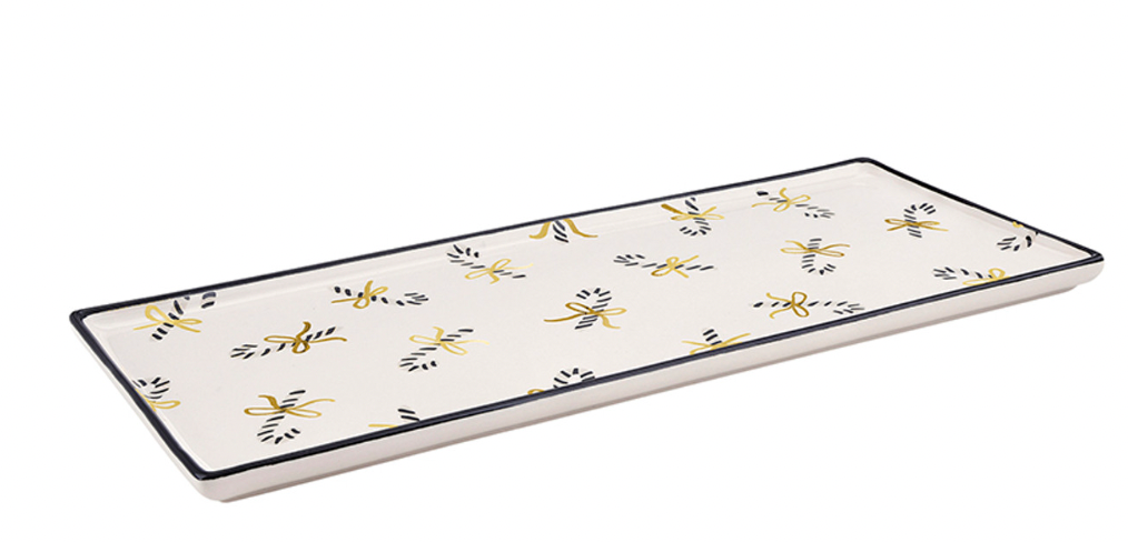 The stylish and attractive design of this ceramic tray makes it ideal for presenting appetizers, desserts, or beverages at your next holiday party.