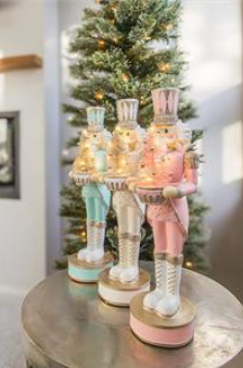 Brighten your decor with the help of this on-trend Nutcracker with LED Tree figurine. Crafted out of resin and plastic, this regal-looking Nutcracker figurine is decked out in dashing pastel-pink and white, accented with golden glitter – carrying a tiny tinsel Christmas tree that lights up with brilliant LED lights for a captivating complement to all your holiday decor. Also available in other colours.