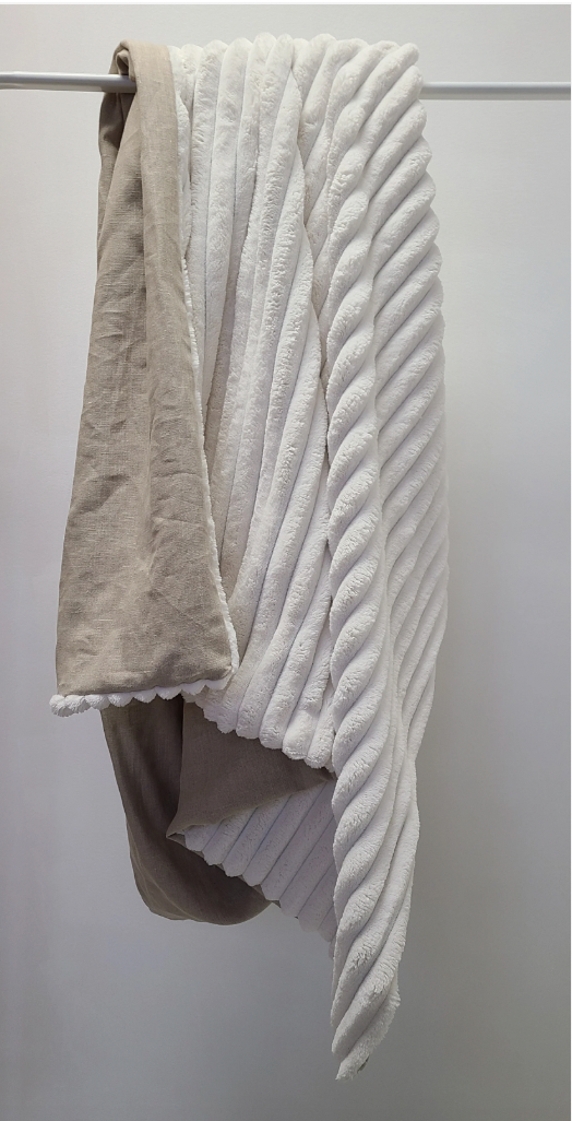 Indulge in luxurious comfort and style with our Natural Linen with Cream Corded Chenille Throw. This sumptuous throw features a nicely weighted linen front and a rich, corded chenille back for exceptional softness and warmth. Add a touch of elegance to any room and cozy up in style.