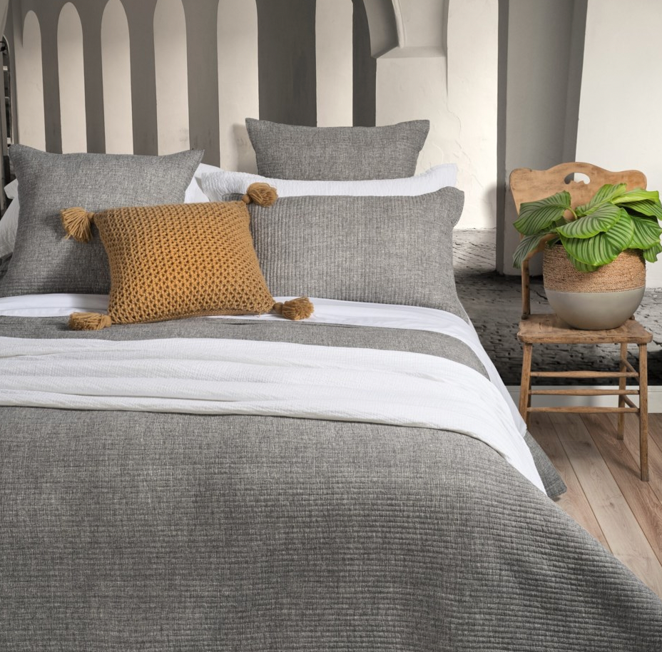 Printed chambray grey coverlet King size coverlet: 104'' x 100'' Decorative pillow shams sold separately 100% coton...