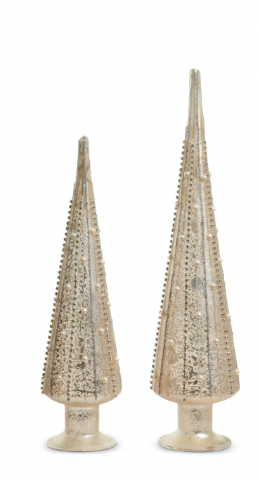 Silver Mercury Glass Tree With Pears & Rhinestones