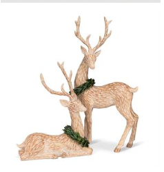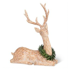 Embrace the spirit of the season with our Laying Deer adorned with a Wreath, a graceful and festive addition to your holiday decor. Standing at approximately 11 inches, it brings a touch of nature-inspired enchantment to your home. Elevate your holiday display with this artfully crafted and beautifully adorned deer figure.